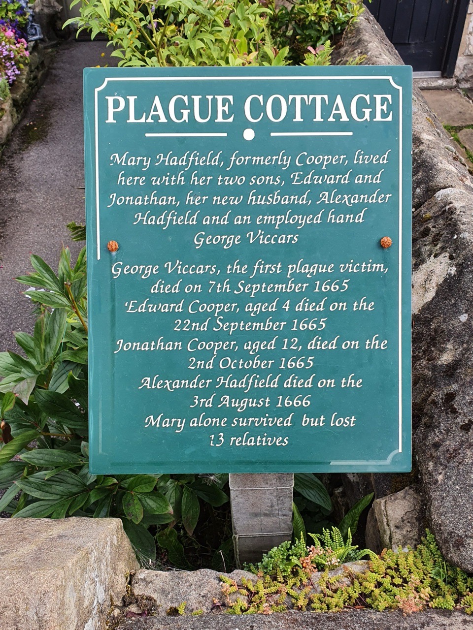 The house looks beautiful today with its floral displays, but there is a real sense of tragedy to it. As the sign notes, George Viccars, the employed hand who brought the cloth in, was the first to die on 7 September 1665. Mary Hadfield, who had children with her previous husband, saw her son, Edward, die on 22 September 1665 and her son, Jonathan, die aged 12 on 2 October 1665. Alexander Hadfield, her new husband, died on 3 August 1666, a surprising gap between the deaths. Mary Hadfield survived the plague, but she lost thirteen of her relatives during the disaster.
