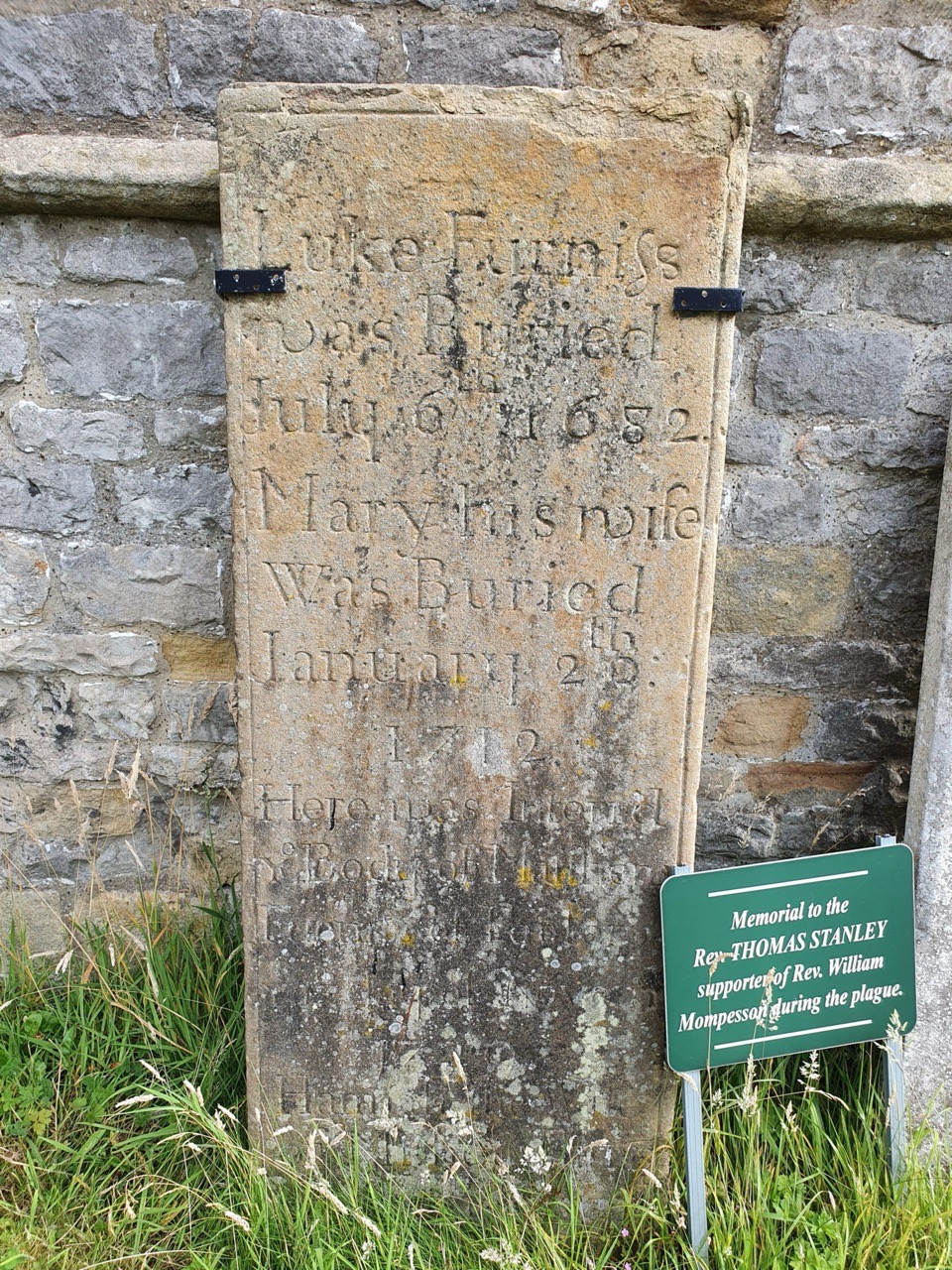 It’s an interesting stone in its own right, the 1682 death looks like it was originally written as 167 before being changed, whilst Furniss is perhaps Furness. The positioning of the ‘th’ on his wife’s Mary’s death also looks odd. The village museum has records which suggest that Luke had moved to the village after the plague of 1665, as he wasn’t listed as a resident during this time.