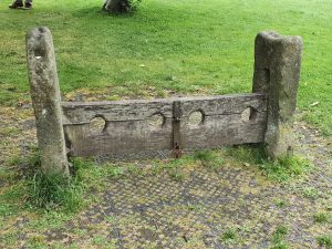 And here’s a photo of what the village stocks looked like in 1919, when it wasn’t quite as obvious what they were.