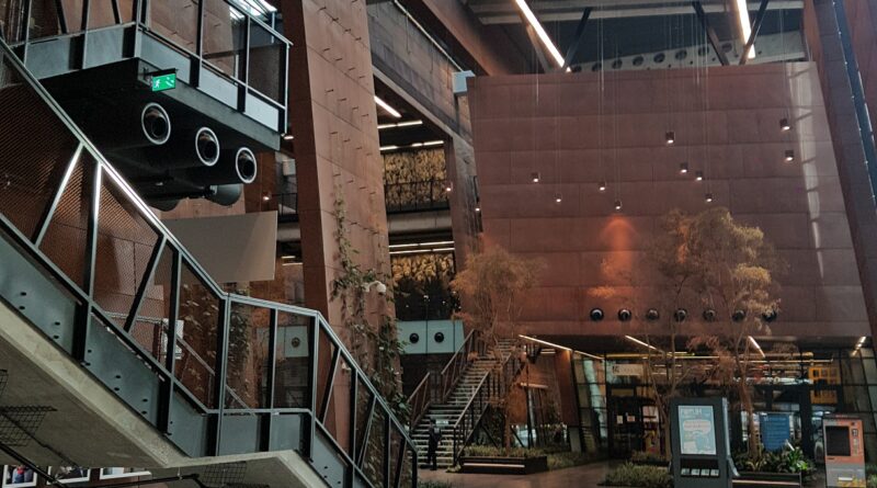 The exterior of the above building, with the ramp to access it visible on the right hand side.