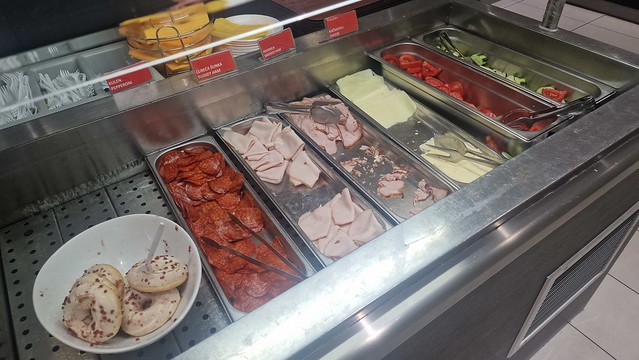The bulk of the food choices were the cold meats and salad items. They were passable, but I was amused by the plastic plates provided that don’t hold the weight of more than about three slices of cucumber. I suspect this is deliberate to avoid piling up of food, there are reviews stretching back some time about this matter.