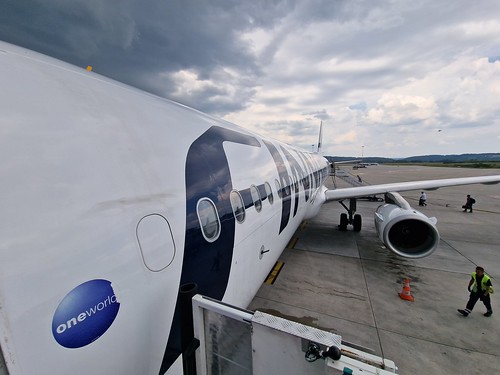 My exit row seat, with the middle seat not being filled on the flight. I fell asleep soon after boarding, fortunately waking just as they handed out the water and cereal bar (which are still in my bag) before having another little sleep. Very restful. This is the big advantage in British Airways over Ryanair or WizzAir, who bang and clank down the aisle trying to sell things. It’s not the fault of the hard-working crew at these airlines, just the model in which they have to work. It was the usual professionally operated flight, the pilots were reassuring and gave useful announcements, whilst the crew were endlessly polite and efficient.