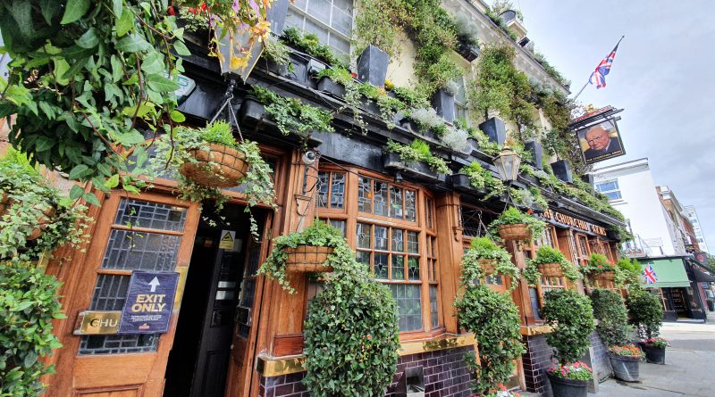 The interior of the pub was no less quirky. The staff in the pub were friendly, with the operation of track and trace being handled professionally and everything seemed clean. Just as my view, the beer selection was weak with no dark options, limited to London Pride (and I know many people like London Pride, but its appeal is a little lost on me) and Honey Dew, both from Fuller’s Brewery, who operate the pub. The pricing was some of the most expensive that I’ve seen, over £6 for a pint of real ale which tops the prices of nearly every central London pub I’ve visited. I was rather pleased that I only ordered half. The drink was, well, metallic in flavour with some sweetness. Lovely if you like Metal Mickey I suppose.