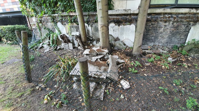 But, away from the memorials of note which are still in situ, this is the little arrangement that Southwark Council seems to think is entirely acceptable. It doesn’t look ideal to me, shattered stones just dumped here at the edge of the park. A sad end to these stones, some of which would have likely caused the family some difficulties to afford at the time.
