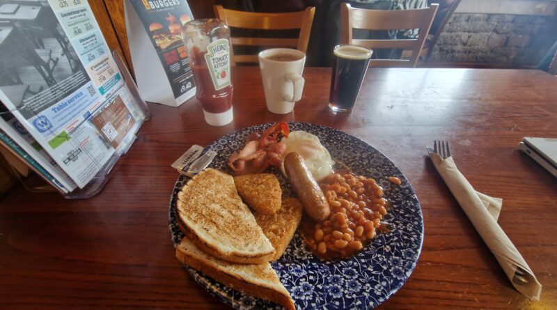 This breakfast, unlimited coffee and half a pint of real ale came to the grand total of £5.18, which is some impressive value. And it tasted delicious, I’m not really one for full English breakfasts (or breakfasses as they seem to be called when customers order more than one) but I rather like the arrangement here.