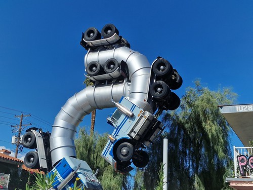 This sculpture rather stands out at its current location of the former Fergusons Motel on Fremont Street, moved here from its temporary installation at the 2007 Burning Man Festival in Nevada. It was designed by Mike Ross from two repurposed trucks, weighing in at 25 tonnes and managing to stand upright despite that weight. Much in Las Vegas is overstated, but it’s perhaps all the better for that.