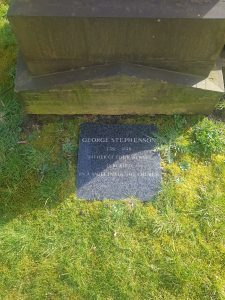 Stephenson died in August 1848 and the relatively basic burial was deliberate, a newspaper at the time mentioned “it is in keeping with his life”. On the day of the burial the shops in the town were closed and the streets were busy with people, wanting to see the funeral cortege of the great man.