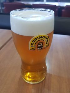 The selection of drinks was, as usual, weak, although I can tolerate Boddingtons as a last resort and especially when it’s free. The pint was fuller than this when served, but I drank some so I didn’t spill it when walking to the table.
