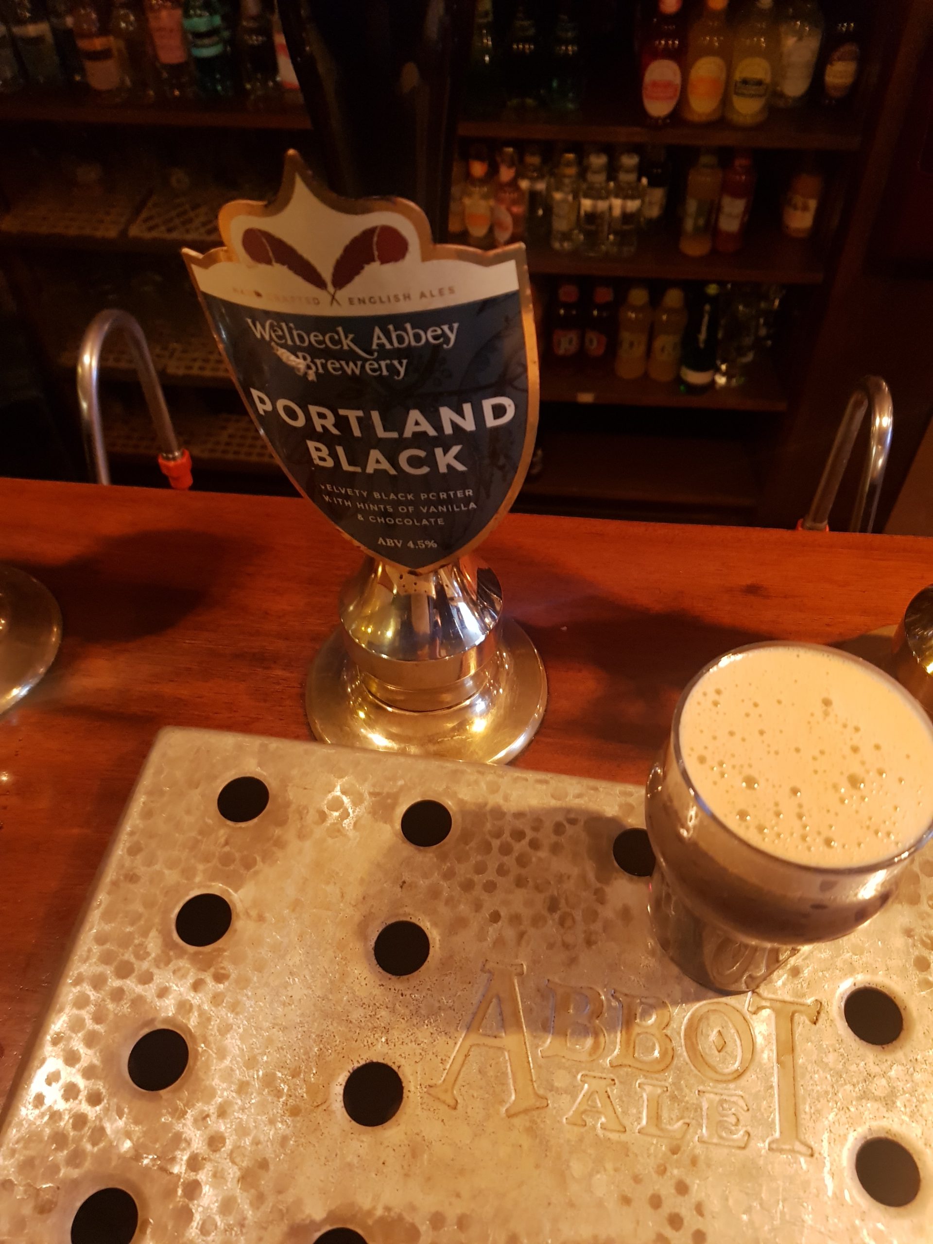 The Portland Black from Welbeck Abbey Brewery, a local brewery I hadn’t heard of until earlier today when I had another one of their beers in the nearby JD Wetherspoons. Not sure that I got the promised vanilla aroma, but the beer was served at the appropriate temperature and had a rich smoky coffee flavour.