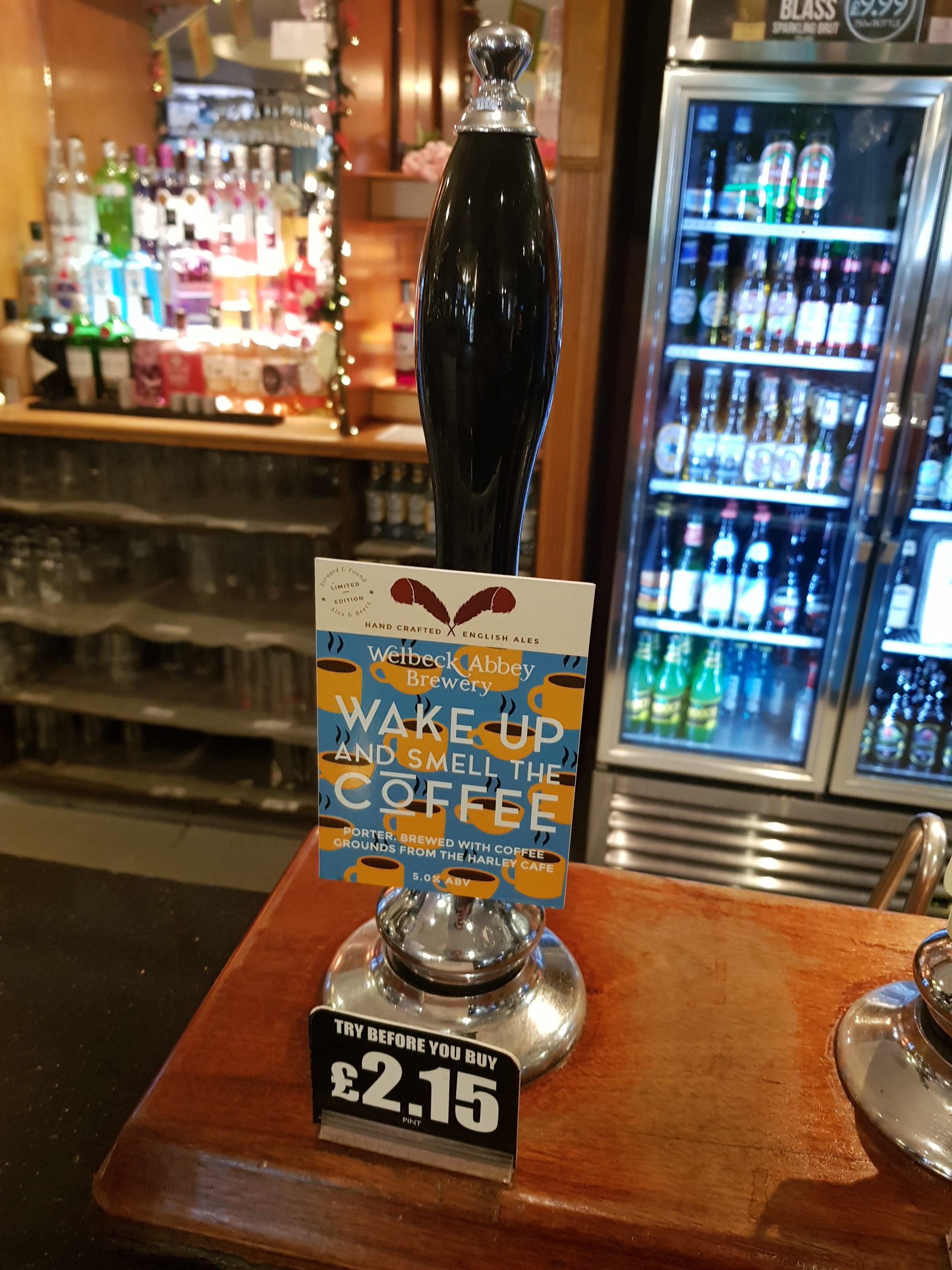 The real ale selection is extensive, as I’d expect from JD Wetherspoons, with this being a rather lovely beer and from a brewery that I haven’t seen before. It’s from the local (well, local to this pub) Welbeck Abbey Brewery in Worksop and the beer is named ‘Wake Up and Smell the Coffee’. The beer doesn’t taste particularly rich, but it has deep aftertastes of coffee and I like that very much. Apparently they use the coffee grounds from the Harley Cafe in Worksop, a little bit of a back story for the beer.