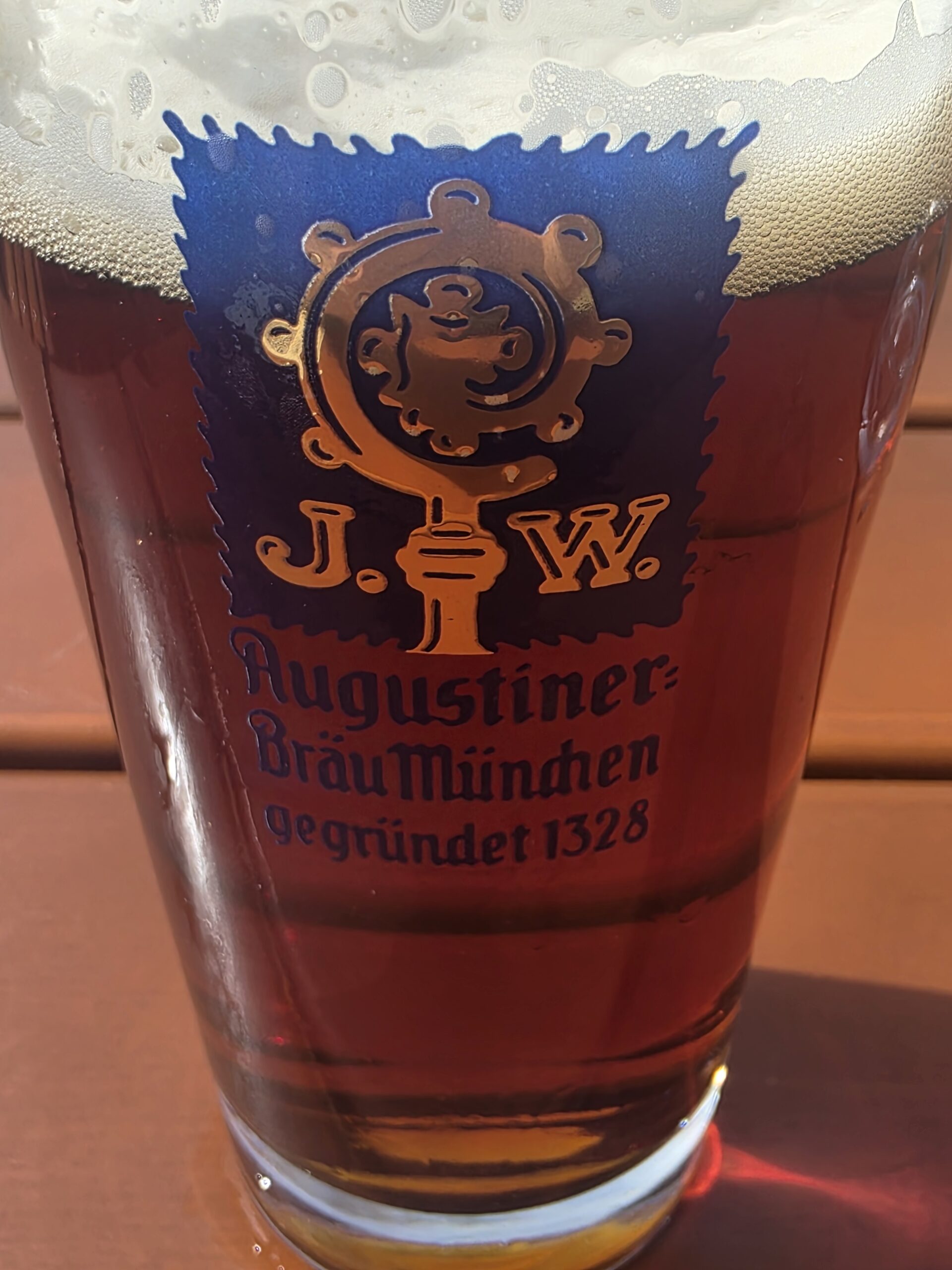 Every customer gets a glass with their own initials on. The beer was the Augustiner Dunkel, and it was pleasant enough with notes of toffee and caramel, with the drink being slightly sweet.