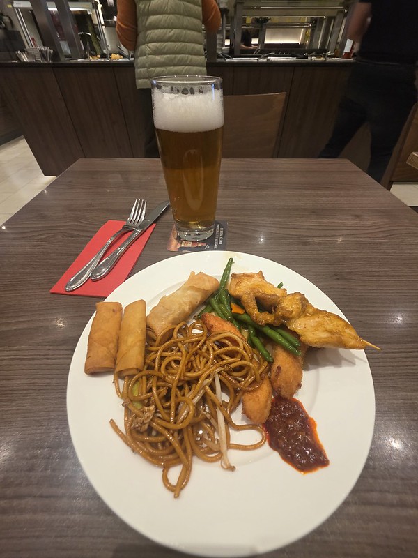 I don’t claim to be classy, as that heap of noodles, spring rolls, battered chicken, chicken skewers and green beans shows. It all tasted fine, nothing exceptional, but perfectly acceptable. They had overdone the salt though, although perhaps if I hadn’t had three platefuls then I might not have noticed.
