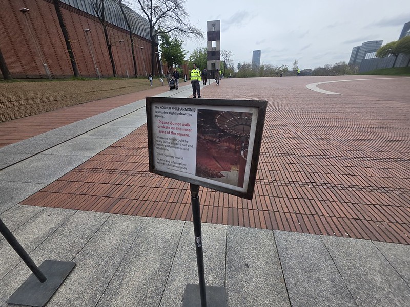 This is the public square above the Kölner Philharmonie, a concert hall that was opened in 1986. The design was apparently revolutionary, the hall has no columns, the sound is meant to be perfect and it has a near perfect room acoustic.