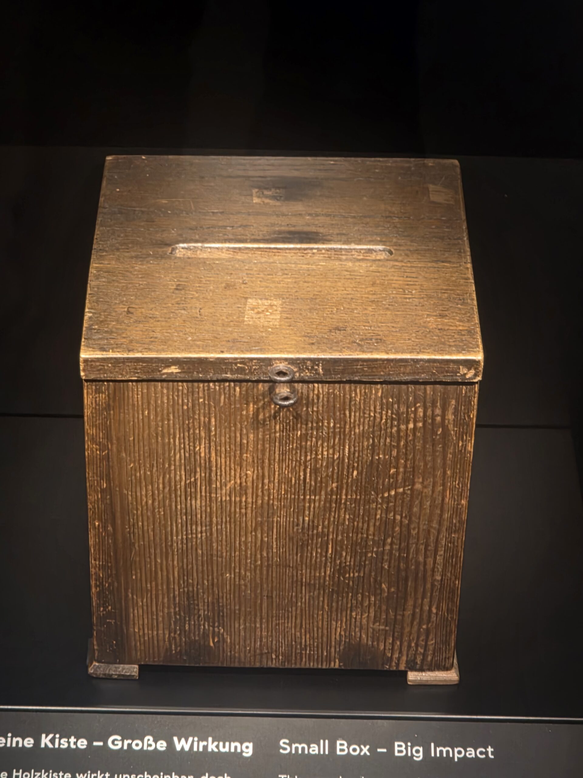 I really like exhibits like this and when taking the photo I accidentally included the “Small Box – Big Impact” headline which does sum this up quite well. It’s the wooden ballot box that was used by Cologne City Council to make decisions between 1945 and 1957. With some foresight, the Mayor in 1957, Theo Burauen (1906-1987), decided to hand it over to the city museum. It seems that as a city mayor, he was a very popular one and it must have been a challenge to try and guide the city away from the Nazi era into a new future.
