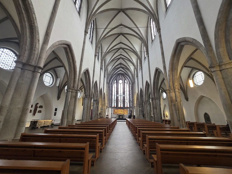 The Minoritekirche in Cologne (St. Mariä Empfängnis in German) might look slightly understated, but it has a long heritage. It was built for the Franciscans, or Minorites, in the thirteenth century which meant some relative architectural restraint, though ‘restraint’ in medieval terms still left room for a very handsome Gothic interior. The Franciscans came to Cologne in the early thirteenth century and their church developed into one of the major mendicant foundations in the city.