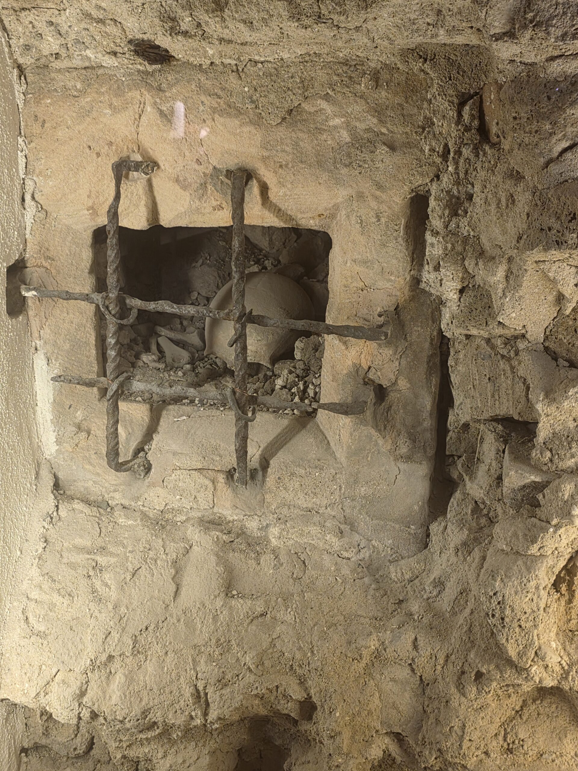 It was only discovered in 1976 and the skull is likely not linked to the hermitage, this dates to the seventeenth century when the area was reworked to be a burial vault for the Augustinian canonesses who were operating the church.