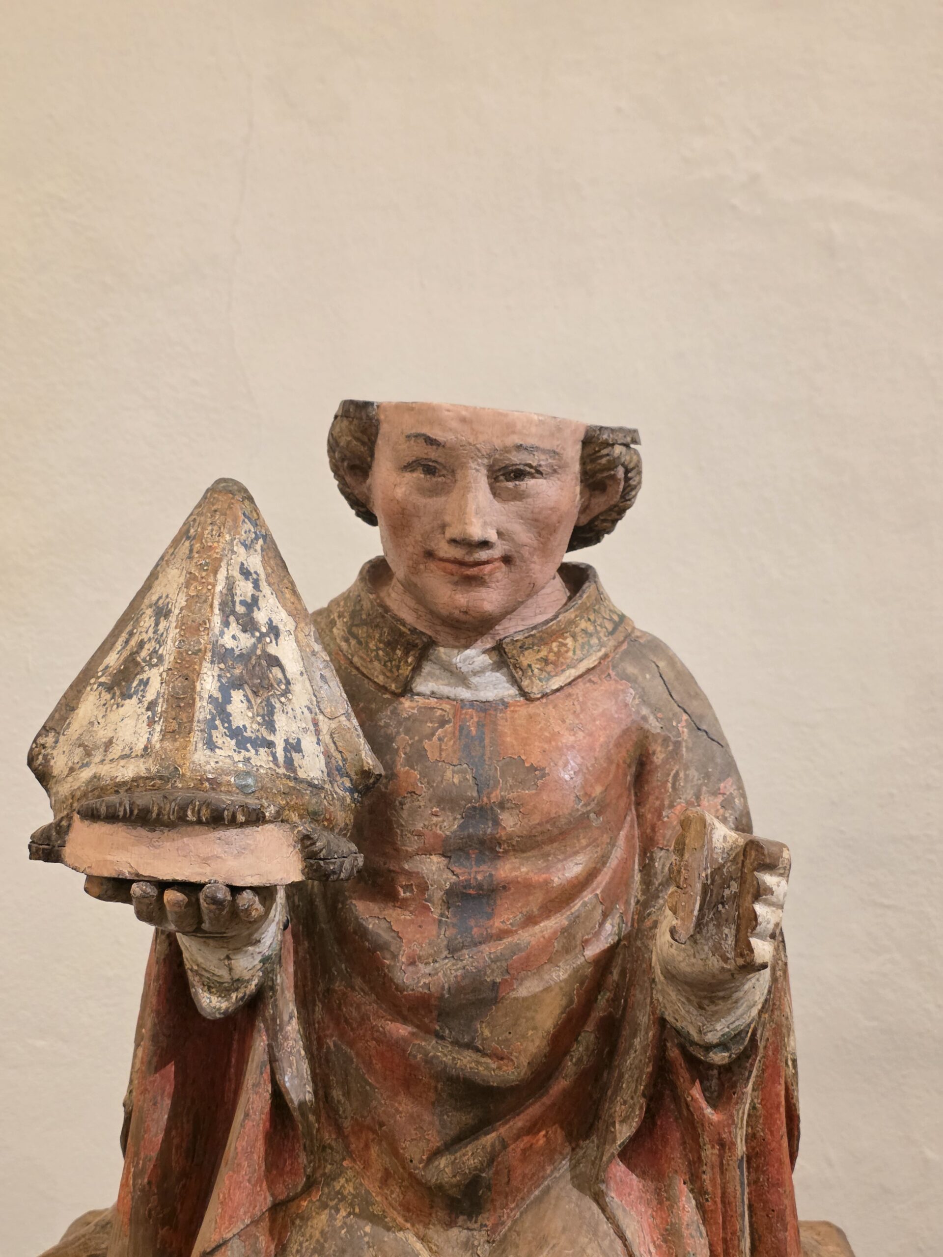 The exhibit was moved from the city’s Wallraf-Richartz Museum in 1929 and it was made in Cologne. It’s made from walnut and it looks like the colours were quite vibrant.