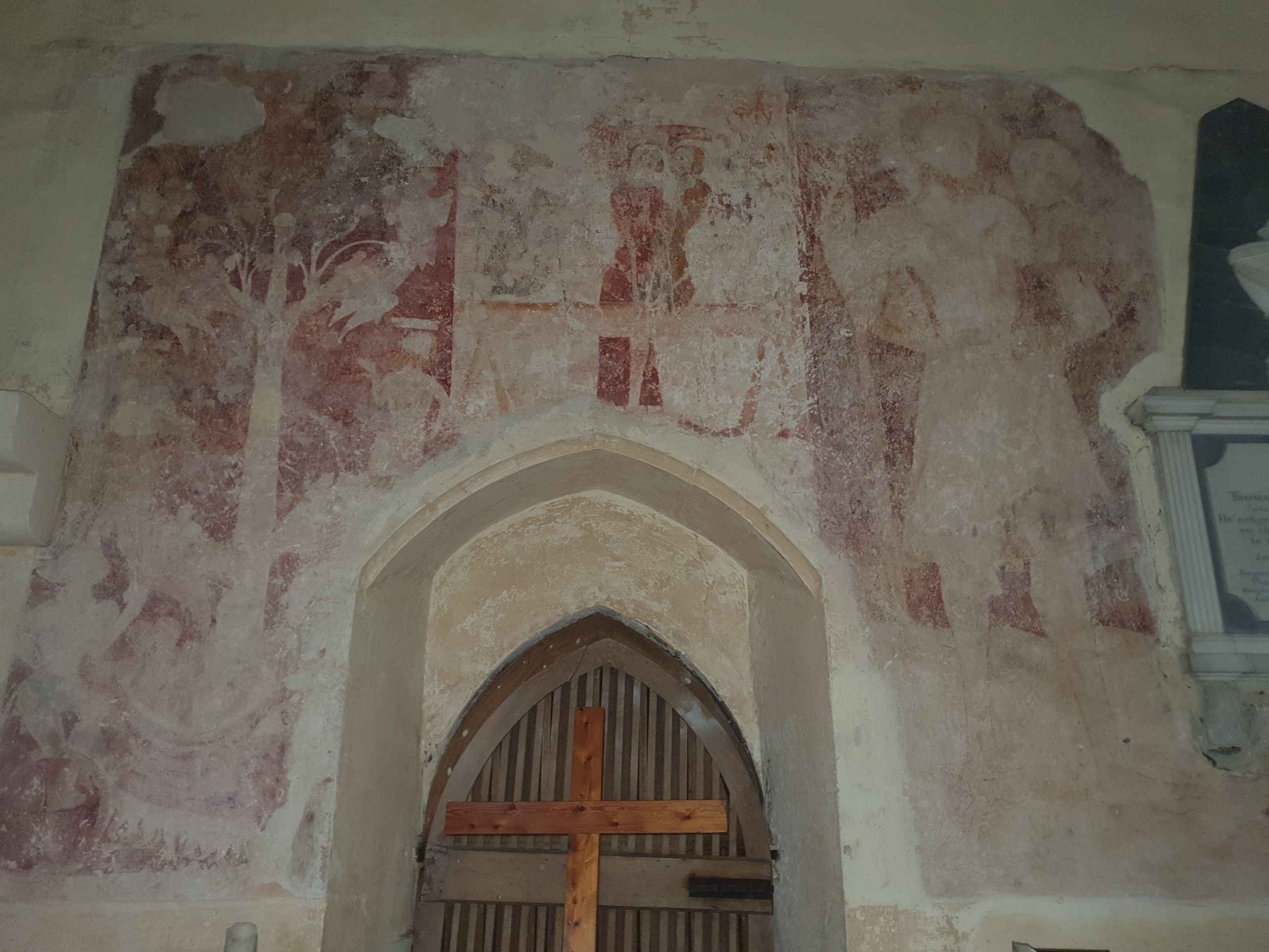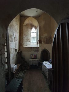 The lighting inside doesn’t entirely do these wall paintings justice, but they are delightful and a fair chunk of them survive. They’re a passion sequence, so telling in pictures the story of Jesus Christ’s last few days of life. As with many churches, they were whitewashed over when they went out of favour, a reminder from when church interiors used to be more colourful and stories were told in images. There’s no electricity in this church, meaning that everything has to be lit using oil lamps, but that adds to the atmosphere and cosiness.