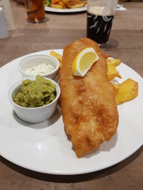 There weren’t many tables free, so we decided to seat ourselves and I was hopeful that there would be fish and chips on the menu. I haven’t had enough of those this week and I was delighted to see that they were on the menu here 🙂