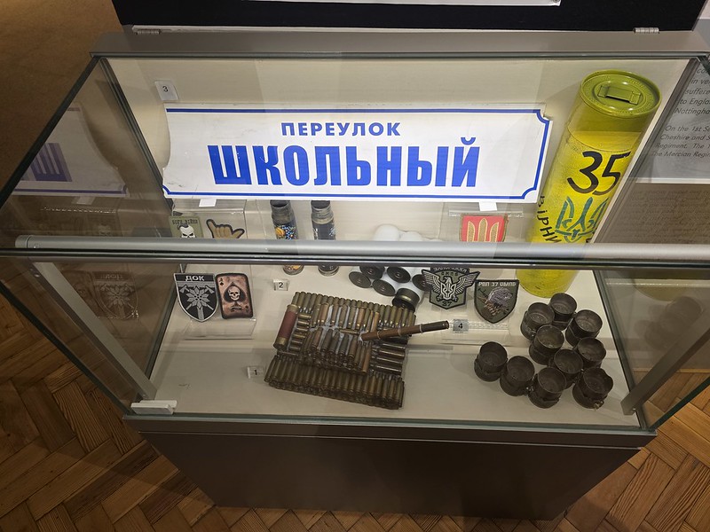The museum has a display in their military section about the invasion of Ukraine by Russia in 2022 and there’s a note on the display which mentions that “the items on display have been collected by a humanitarian voluntary aid group from England which supports Ukraine.”