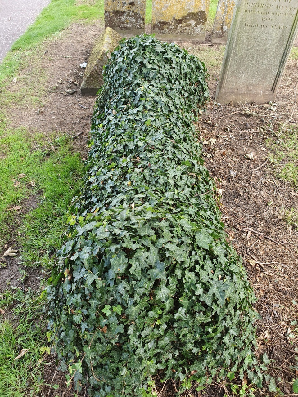 In a similar vein to the grave at Attleborough church that was overgrown, there’s something quite corporeal and spiritual (if something can be both these things) when graves get covered like this.