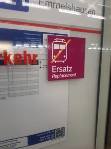 So, we departed the train at Trier and went to the front of the railway station, with the above photo showing our options. I was moderately surprised that there were no staff and the railway station building was closed, a situation which is intolerably unsafe (not necessarily for us, but for a lone female traveller it certainly is). We wandered around looking for a replacement coach service, and there weren’t any. We did have a back-up plan of visiting the Ibis Styles in Trier, where I’ve stayed before, but this was expensive and would have given us a troublesome early morning trip from Trier to Luxembourg before our flight.