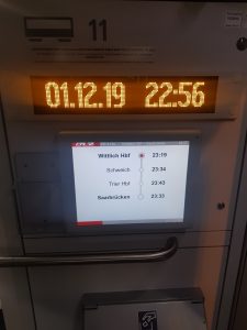 The information screens didn’t have the correct times on, which was initially confusing, and the time for Saarbrucken made no sense.