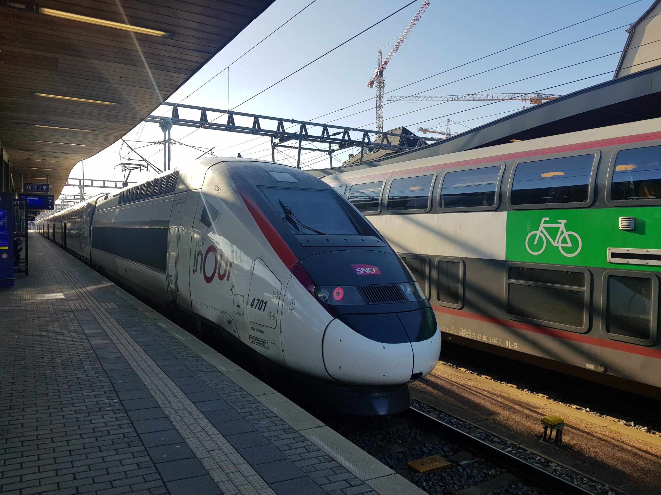 Some trains in Luxembourg railway station, I always like the look of these TGV trains. Not that we were getting them, they were a bit expensive compared to our complex routings with Deutsche Bahn….
