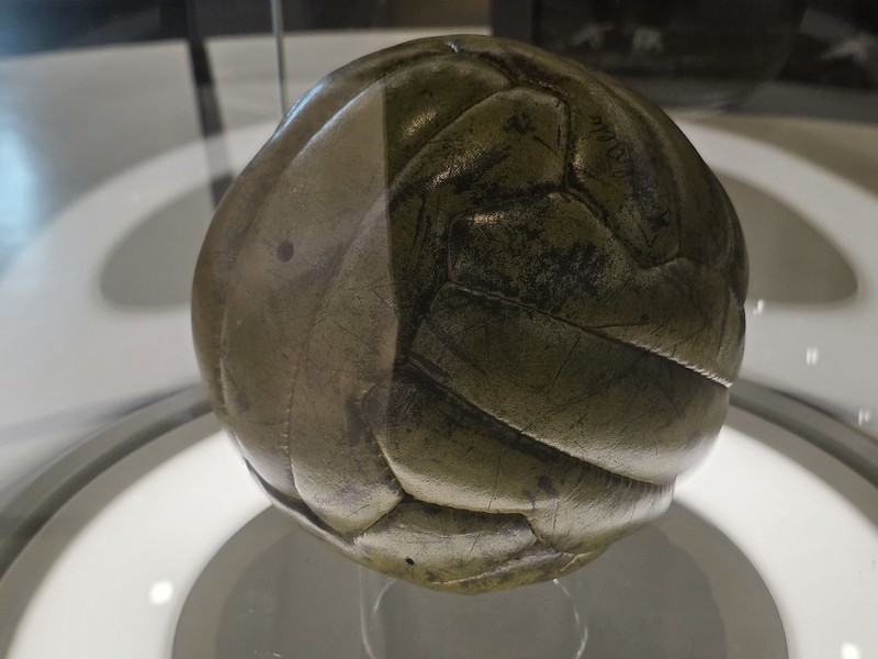 This is one of the star exhibits in the German Football Museum, a football which was used in the 1954 World Cup Final and it has also been signed by members of the winning team. I’ve already mentioned about the ‘Miracle of Bern’ in my excitement over a brick, but this really surpasses that. ‘Rahn schiesst!’ and all that, one of the most enthusiastic commentaries that I’ve heard. The ball was made by Basel based company Kost Sports and FIFA at the time insisted that there was no branding on the ball. This was the ball used in the game and it marks the winning of the first German major football trophy. They’ve won the World Cup three more times since then, which is better than England have managed, but there we go. A piece of German heritage.