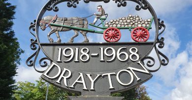 This market cross in the centre of Drayton is one of the oldest structures in the town, rightfully a listed monument as it’s from the fourteenth century. It was restored, albeit a little crudely, in 1879 and bronze plaques were attached. It’s a little tucked away under the trees, but it is of some considerable historic note and it’s another one of those pieces of architecture that I’m surprised has survived the centuries.