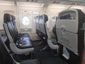 On board, the flight was relatively full, although the seat next to me was left unfilled. These are exit row seats so they were spacious and the crew member reminded occupants of their responsibilities in the event of any incidents during the flight.