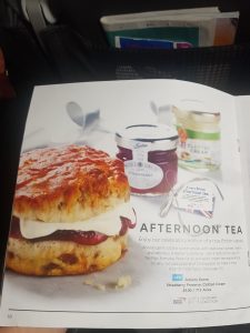 From the in-flight menu, this is the page which brought British Airways to the attention of that media titan, the Daily Mail. The afternoon tea doesn’t include a cup of tea, which is only sort of mentioned in the description.