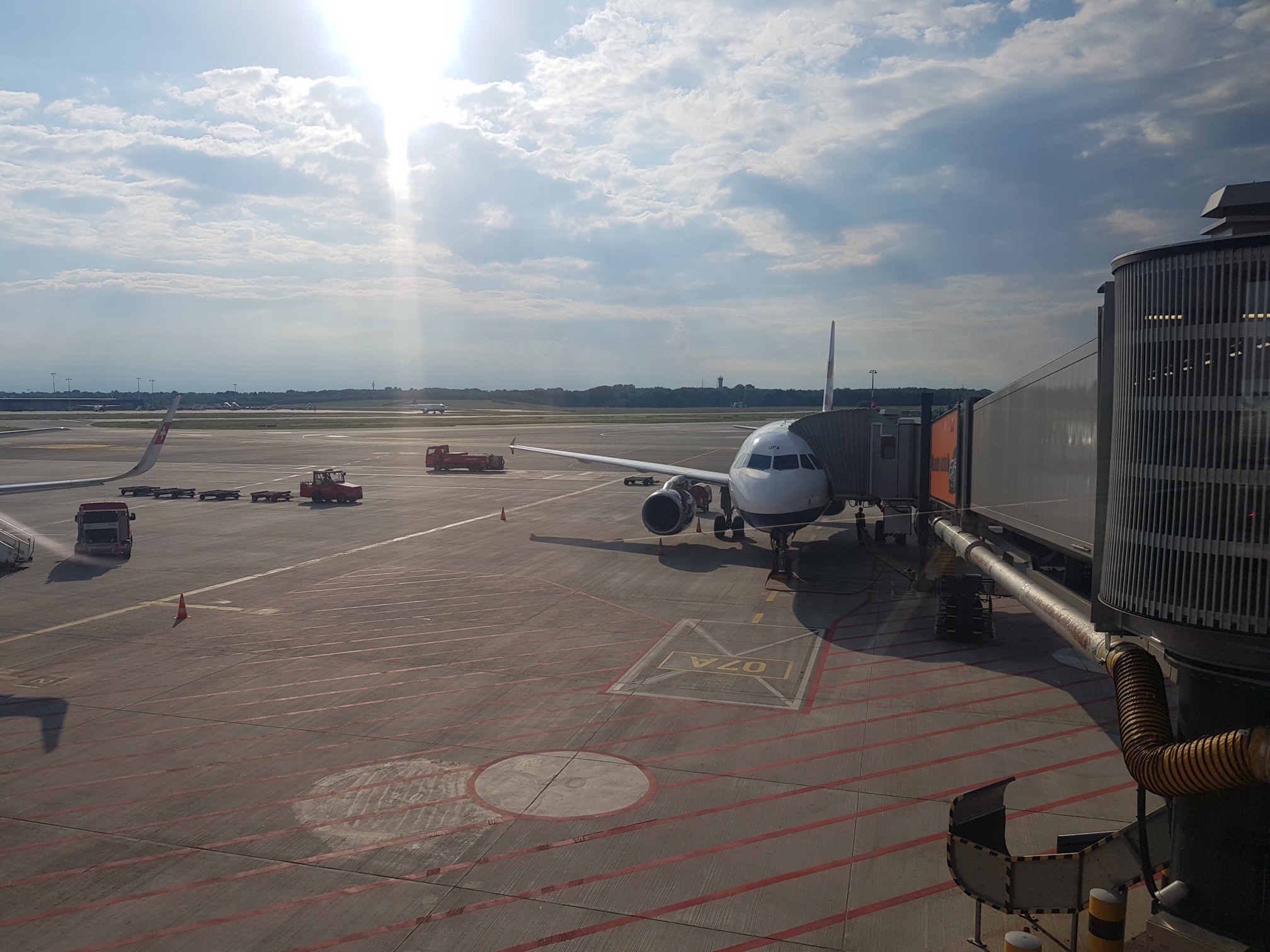 This is aircraft G-EUPO after it had landed in Hamburg Airport, arriving on time from London Heathrow T5. The aircraft is an A319 which BA have owned and operated since 2000.