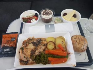 The meal, which was roasted chicken with morel mushroom and spring onion casserole with thyme roasted potatoes. The advantage of sitting in seat 1C is that I know that I can get my first choice of meal (unless something really bad has gone wrong with the catering).