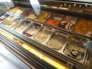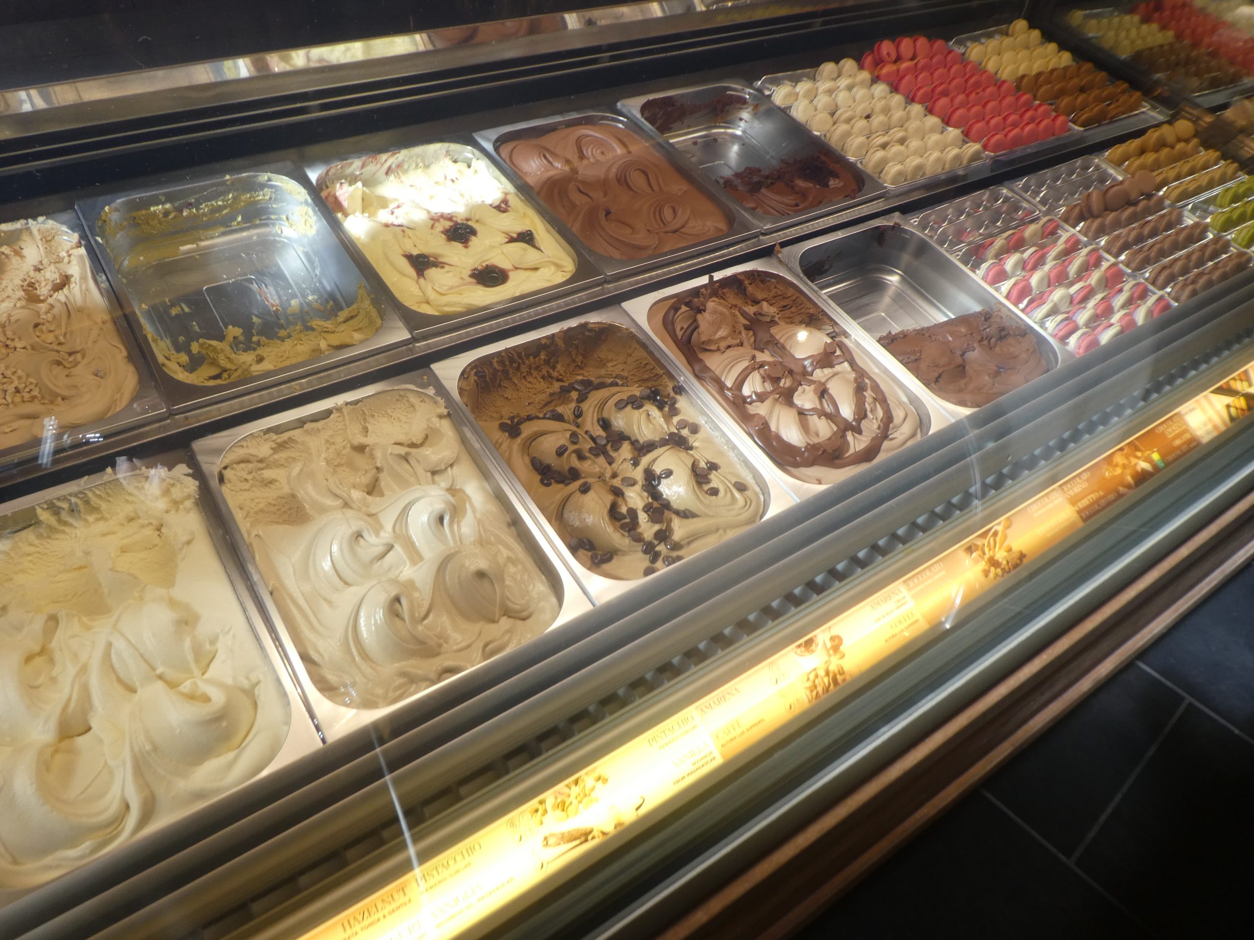 The range of ice cream flavours, with many tempting options laid out in front of me.