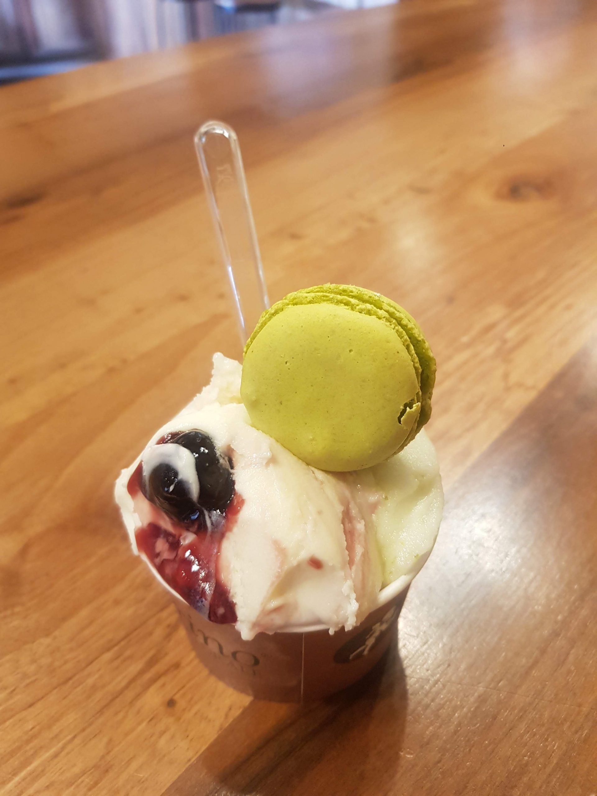 For a little extra money, they put a macaron on top, in this case a pistachio one. The three ice cream flavours that I went for were black cherry, lemon and the lime & basil. The latter was one of the more unusual ice cream options that I’ve tried, but the combination worked well. It wasn’t the cheapest ice cream, costing getting on for £5, but it wasn’t an unreasonable price compared to other similar locations. And the quality was reasonably high, with the environment also being clean and comfortable. Perhaps my only complaint is that the richness of taste of the ice cream wasn’t as good as some other shops, but it was still pleasant enough.