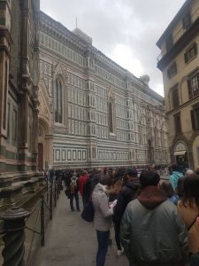 The queue to climb the Dome is separate from the queue to enter the Cathedral, with the latter being visible on the right-hand side of the photo. The entrance to climb the Dome is on the door on the left in the above photo and it’s essential to have an advance ticket. The advance tickets have to be, well, booked in advance, which can be done by using the terminals in the Cathedral’s museum. I tried to book on Sunday morning, with Tuesday morning being the first available time that I could pick. There was around a twenty-five minute wait in the queue, during which time there were some people trying to extort money from those queueing. There is a charge to climb to the Dome, but I had a Firenze Card and this was included as part of that.