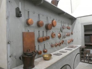 Some views of the kitchen as it now looks, which reflects how it might have appeared in the nineteenth century. Meals were cooked here for the main palace and there are corridors that connected this grand kitchen, located to the side of the house, to the main rooms. The kitchen was restored relatively recently, as for the best part of the last century this area had been used for storage and had been somewhat forgotten about.