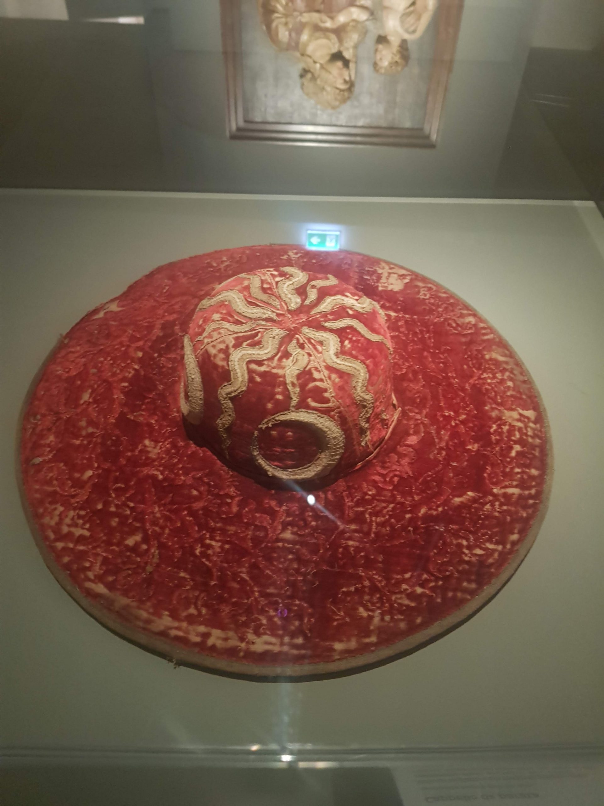 This parade hat dates from the second half of the fifteenth century, which makes it a fascinating exhibit for any museum. Of course, this being the Uffizi, their collections are exemplary and not only has this item been preserved, but it’s thought that it might have belonged to Pope Pius II or Pope Pius III (he’s the Pope who was in the position for just 26 days). It’s made from velvet, with silk and gold braid, so a very elegant piece.