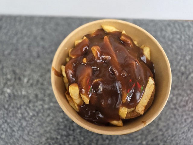 And the photo that James took of his food and I’m not sure if that ‘Mushy P’ was deliberate or not. Everything at the stall was clean and tidy, with cutlery pro-actively provided and I was given the chance to add salt and vinegar to the chips before they put the gravy on the top.