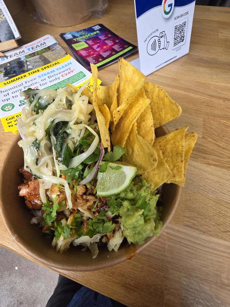 Firstly, I think I made the correct decision in just opting for the regular choice, as it was a generous portion and we saw how much food was in the large bowls that some other customers ordered. I very much like the variety of tastes and textures here, there’s plenty going on with the guacamole adding smoothness, the cheese adding flavour and the nachos adding texture. There’s mojito slaw on the top and rice underneath, with the beef pork mix having a richness to it with plenty of large pieces of meat. This did surprise and delight me, high quality, freshly prepared and reasonably priced.