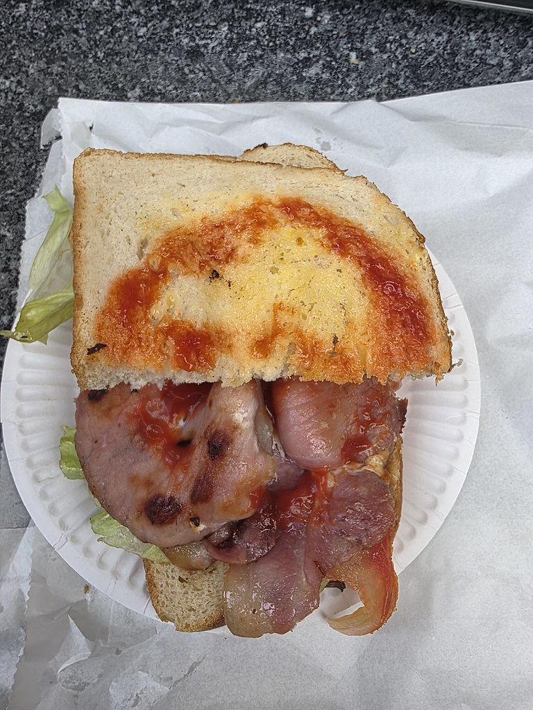 I don’t like fat on bacon unless it has been burnt off, so I had to dismember the sandwich to quite a degree to satisfy my own personal and I accept specialist taste. The bacon itself was of a decent quality, the bread was fresh and the tomato had some flavour to it. It was all perfectly pleasant, although I do like the stalls who pro-actively check if the customer wants crispy bacon or not.