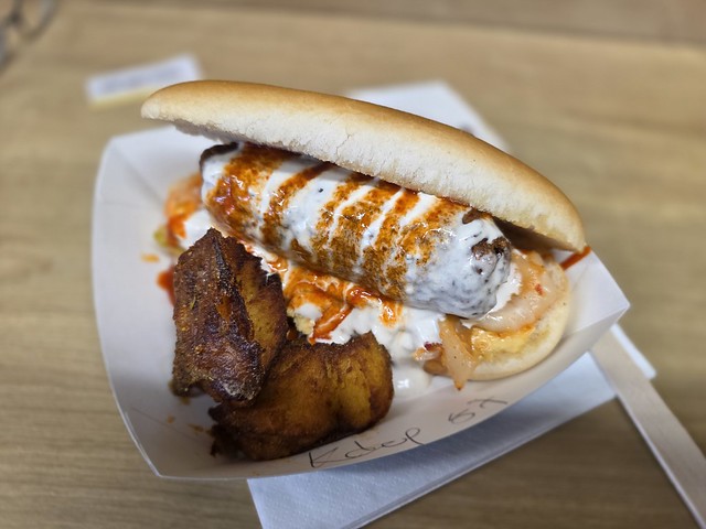 I went for the Kimchi Dog, which is what I had tried to order when we visited in 2023 but they weren’t available at the time. This was decent, the roll was lightly toasted and the falafel sausage was firm on the exterior and yielded when cut to a softer interior with the falafel having a depth of flavour. I liked the homemade kimchi element under the sausage, although I thought that it could have been a little more powerful in flavour. The Cajun potatoes were crispy and tasted rather pleasant with some lingering heat, whilst the sauce added some extra piquancy to the whole arrangement. The elements worked well together, with the blend of spices and ingredients being thoughtful.
