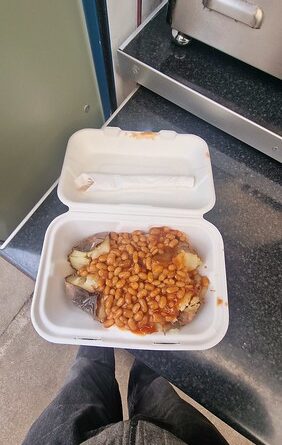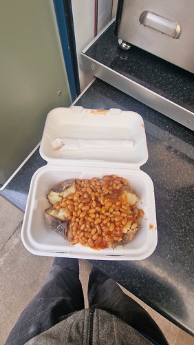 I was pleased that they checked if I wanted butter or not, as I’m not keen on it on jacket potatoes. The potato was cooked well, had a crispy skin and there was a generous portion of beans, so everything was as expected. There was apparently black pepper available on the counter, but I couldn’t get to it and nearly every meal is improved with a generous sprinkling of it. James went for a similar menu option, although he went for cheese and beans, as well as having butter. He’s always been much more decadent than me though.