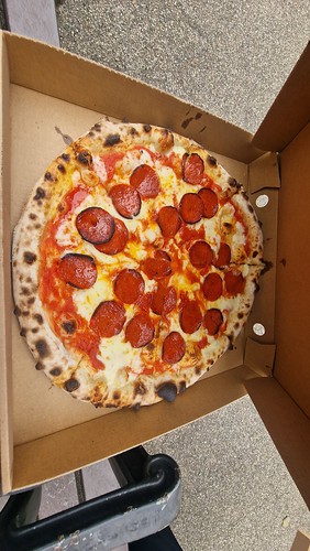The stall was busy when we arrived and although the team members were occupied with preparing food, the service was prompt and efficient. James and I both went for the pepperoni pizza which I thought was reasonably priced at £9. We were pro-actively told that there was a delay on food service of around fifteen minutes because it was busy, but that didn’t seem excessive and I was grateful to be told in advance. The stall accepts cards and cash, with the ordering process all feeling well managed. It also was evidently a popular stall judging by the number of customers, they’ve built up something of a reputation over the last couple of years.