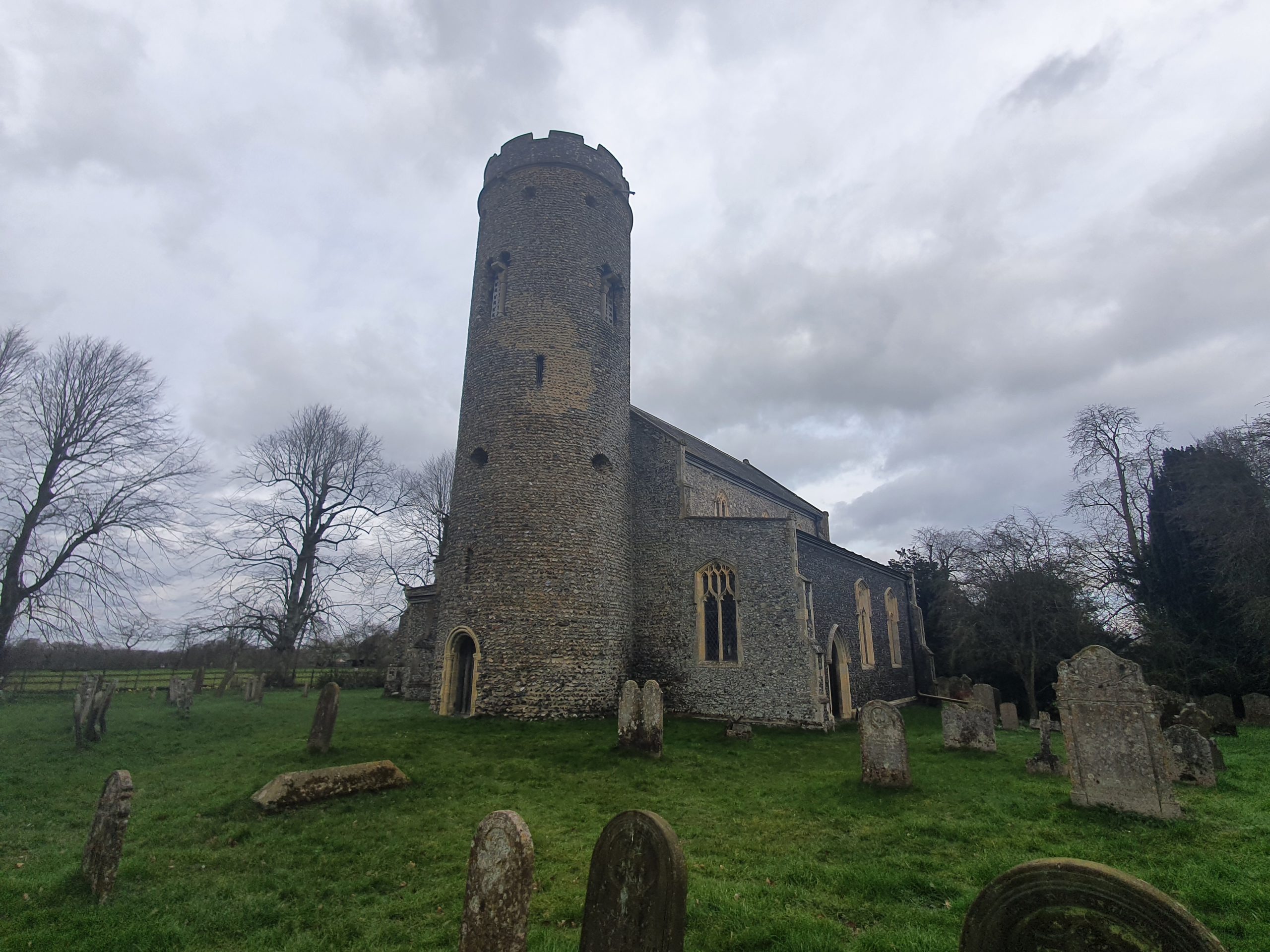 What is clearly evident when approaching this stone tower is that it’s remarkable, and very different to other round towers in Norfolk. There are Saxon windows visible within it, there’s a Norman style door at the base and it doesn’t look overly repaired. Indeed, this tower dates from around 1000AD (that’s what the church think, other historians place it a bit later, but I like the church’s guess), making it over 1,000 years old, another remarkable survival. This heritage means this is one of the best preserved Saxon round towers in the entire country, with the church noting there’s an old medieval staircase inside that can be viewed by appointment.
