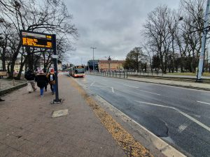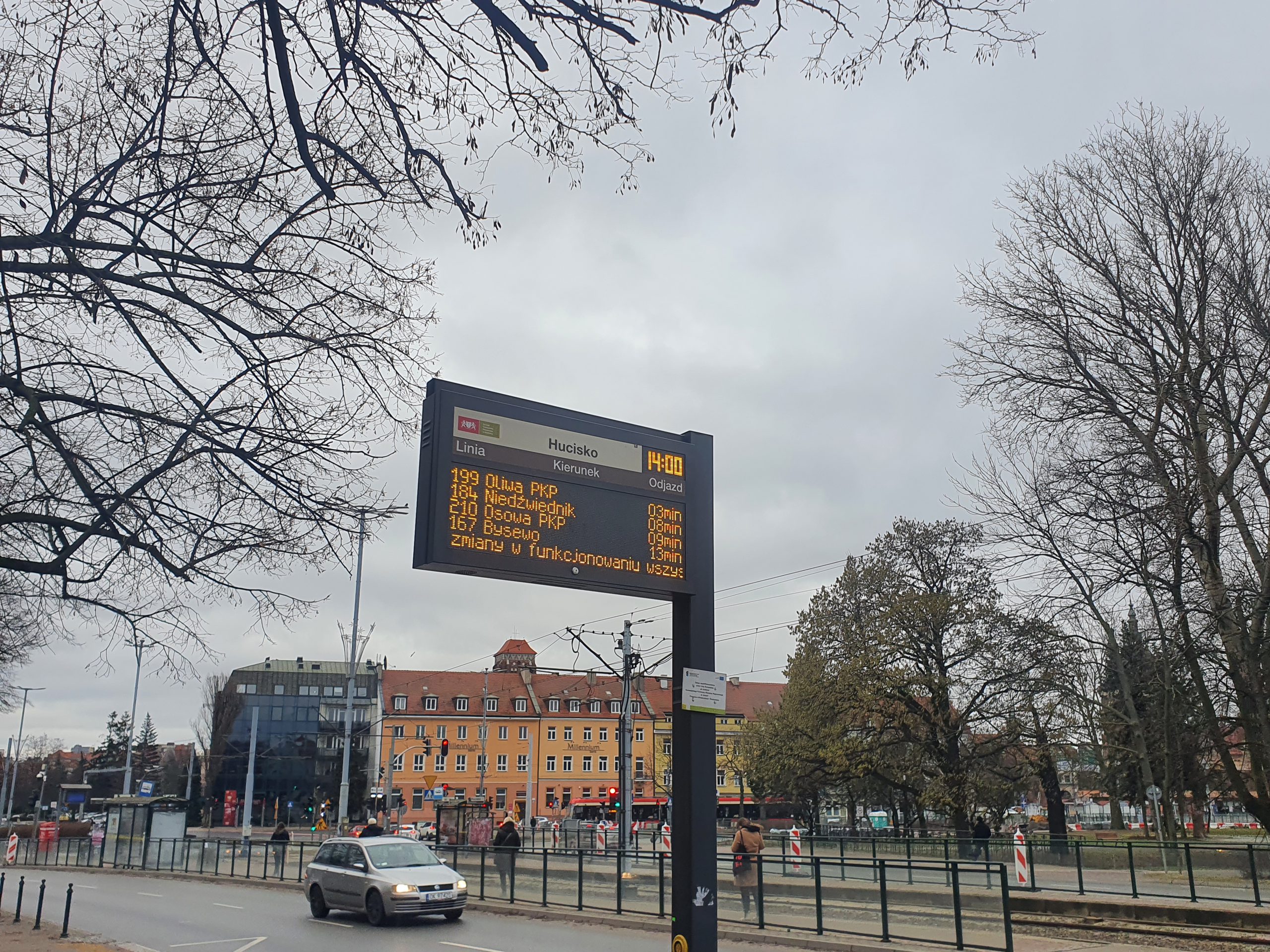 The bus back to the airport goes from opposite the central railway station, or at this spot near to Forum Gdańsk. There’s not normally more of a 15 minute wait between buses and the times are clearly displayed. There’s a 24-hour service, although the night time version of the 110 and 210 buses is the N3 service.