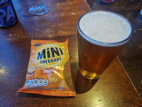 A balanced diet is important, so here are some Mini Cheddars along with half a pint of Reedlighter from Woodforde’s Brewery. The good news is that the delays on the track near Romford seem to have gone away, they’ve fixed the flooding, which means we should be getting into Stansted on time. I’m very excited about this whole Polish trip even though my very wealthy friend Gordon isn’t going, we’re about to leave for the railway station now to see what delights and surprises the rail network will bring us.