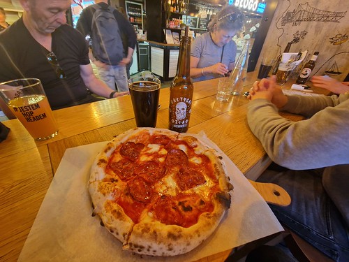 Pizza for lunch always seems a good idea, this is from the Czerwony Piec pizza outlet at the food court and the beer is the Bałtycki Dziad Stout, a very acceptable stout from Alebrowar. Served searingly hot, the pizza was just what I was hoping for in terms of tastes and flavours, with Bev questioning whether I’d made up the phrase of leopard spotting. I hadn’t, but if it isn’t chicken nuggets then her knowledge is a little limited. Ross ordered a vegetarian pizza, for reasons unknown, then quickly and willingly swapped that for some of Bev’s pizza when the opportunity arose. On the bright side, Bev had nothing to complain about, well, other than the font wasn’t to her liking on the menu as she couldn’t easily see the wi-fi code. But, I didn’t say anything.