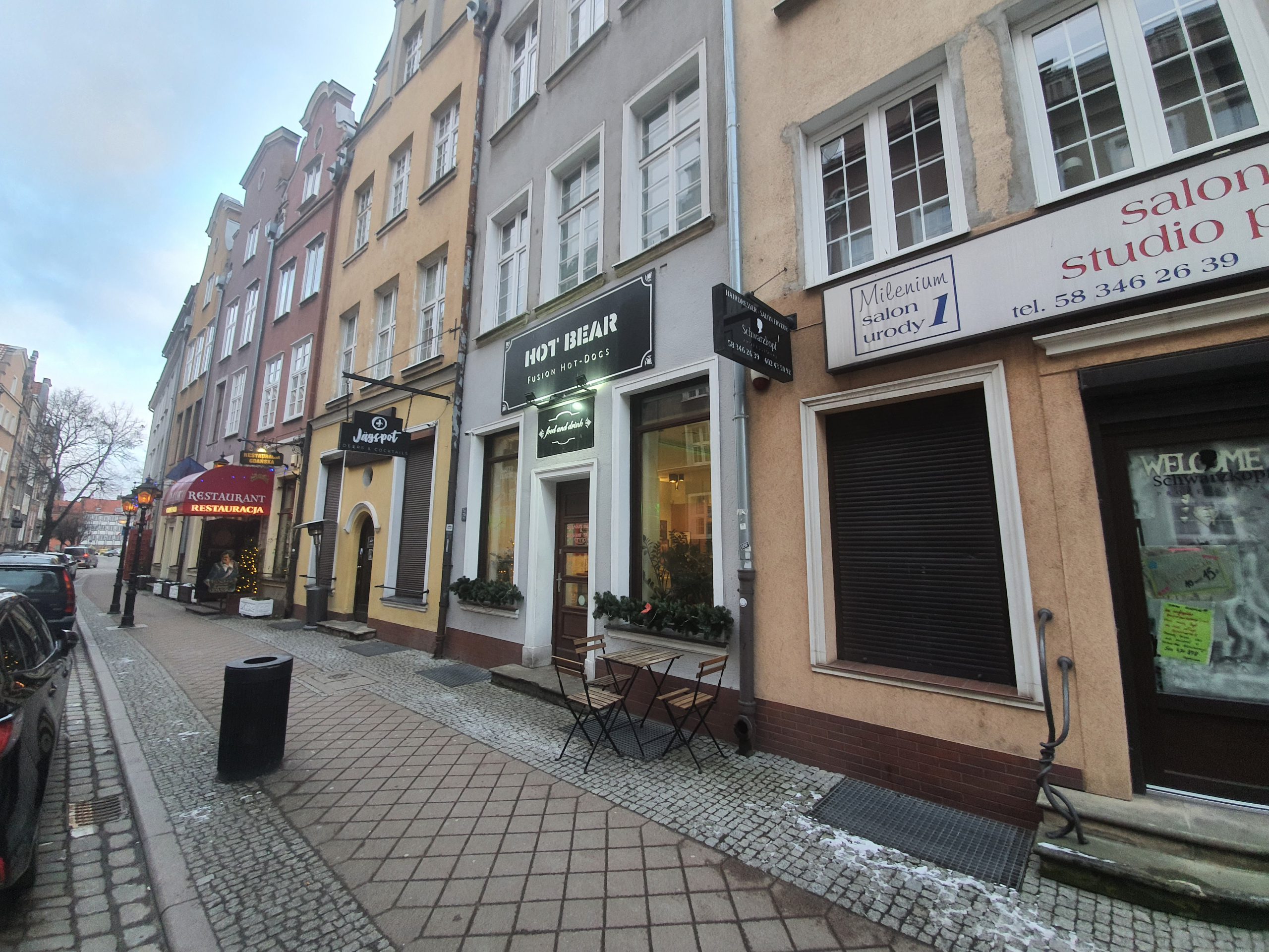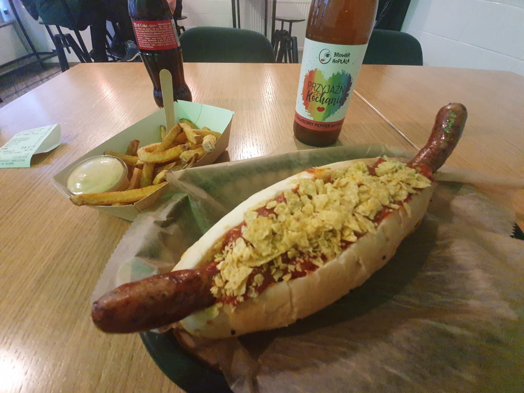 It’s cold in Gdansk at the moment, so the thought of a hot dog seemed a perfectly sensible one. Actually, getting out of the wind coming from the river seems an entirely good idea on its own, but the thought of a cosy little restaurant made it even more appealing. Hot Bear came well reviewed in terms of its products and customer service, and it wasn’t far of a walk from the pub that I was in.